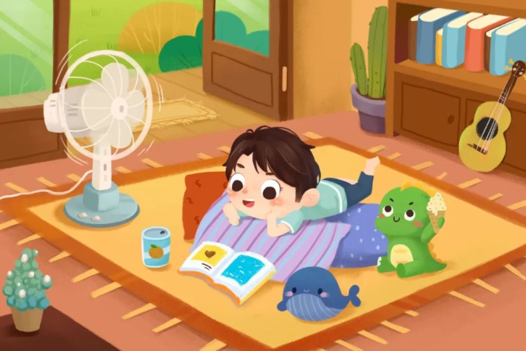 夏季,儿童要合理安排户外活动时间,尽量早晨或晚上户外活动,避免烈日当头的正午进行长时间户外活动。儿童在户外玩耍时最好待在阴凉处,可随身携带扇子或手持便携式小电扇。高温、高湿天气时,应在凉爽的室内活动,如室内游乐场、室内游泳池等。避免儿童单独待在汽车内或狭小空间内。高温天气时,家中使用电风扇、空调等降温,并定期开窗通风。