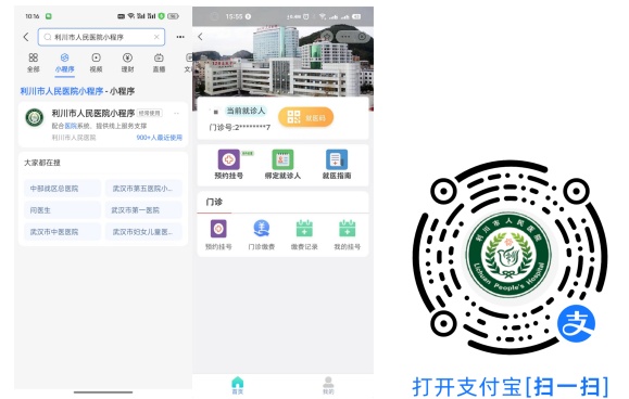 l 在支付宝首页搜索“利川市人民医院小程序”,点击进入。